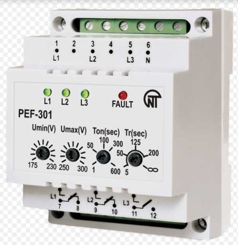 Służy do zasilania jednofazowej instalacji przemysłowej i domowej 220V/50Hz z trójfazowej 4-przewodowej sieci 3?380+N w celu zapewnienia bezzakłóceniowego zasilania jednofazowej instalacji elektrycznej i jej ochrony przed niedopuszczalnymi wahaniami napięcia w sieci. W zależności od obecności i jakości napięcia w fazie głównej (ustawiony priorytet ? linia 1), dokonuje wyboru fazy o najlepszych parametrach oraz z dużą szybkością dokonuje przełączenia obciążenia jednofazowego na tą fazę. Po przywróceniu właściwych parametrów w fazie wyjściowej PEF-301 może ponownie przywrócić w niej obciążenie.
