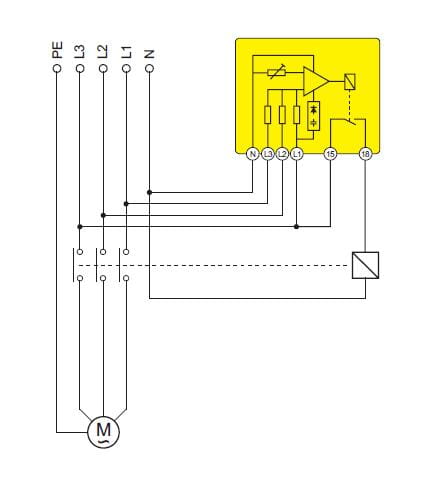 Chroni silniki trójfazowe przed uszkodzeniem spowodowanym pracą przy niepełnym zasilaniu. Urządzenie wyłącza obwód zasilania cewki stycznika sterującego silnikiem w przypadku wystąpienia asymetrii napięć w poszczególnych fazach, a w szczególności zaniku napięcia w co najmniej jednej z faz. Nie chroni przed symetrycznym spadkiem