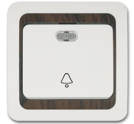 Przełącznik dzwonkowy z podświetleniem kontrolnym 1/0So - biały-drewno-biały 010423