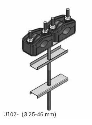 Służą do mocowania kabla i rur o średnicach 25-46mm oraz 45-70mm na słupy ŻN. Uchwyty z odsadzeniem stosuje się w przypadku konieczności obsługi konserwacji słupów z wykorzystaniem słupołazów. W przypadku obsługi konserwacji z wykorzystaniem zwyżek, ogólne zastosowanie znajdują uchwyty bez odsadzenia.