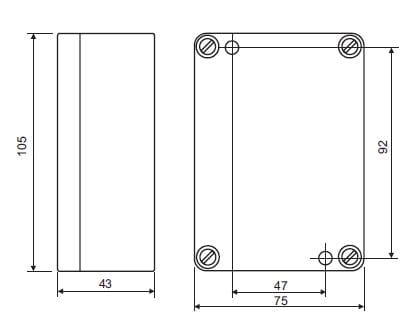 Obudowa...............................typ H, 105x75x43mm