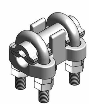 Zaciski śrubowo kabłąkowe służą do łączenia dwóch przewodów aluminiowych lub stalowo - aluminiowych, do zamykania pętli na izolatorach stojących i uchwytach odciągowych kabłąkowych (półrolka).